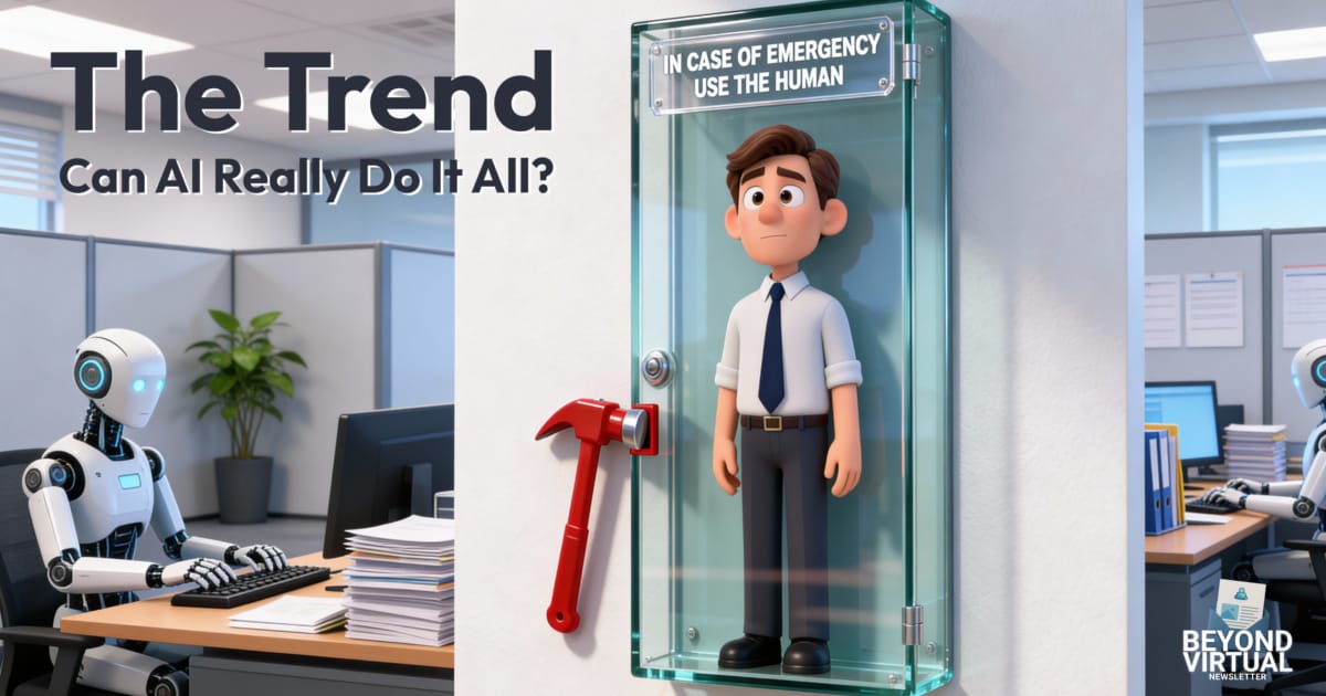 The companies winning with AI aren't automating everything. They're figuring out where human judgment still matters. Right now, that's the Virtual Assistant who knows how to use AI without becoming too dependent on it.